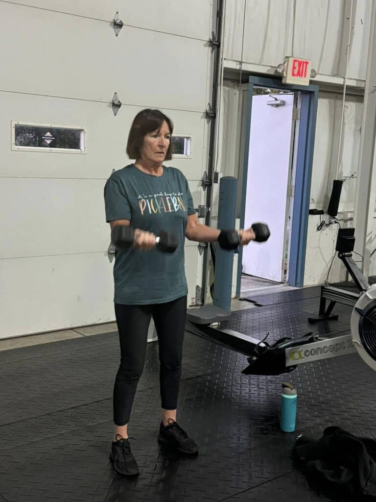 It has been wonderful to see Carol become so involved with CrossFit since July of last year. She is always an enthusiastic and upbeat presence at our 7 a.m. class. One day, she joined us out of the blue after hearing great things about the gym from her daughter and son-in-law, Amy and Varun, and has been with us ever since. While visiting Arizona last winter, she also spent a few months at another local CrossFit gym. Carol will be the first to tell you that her fitness level has significantly improved over the past year: she’s stronger, has better mobility, and her endurance has vastly improved. We are proud of all the hard work Carol puts in at the gym, and she has been an inspiration to those around her. Keep up the great work, Carol!